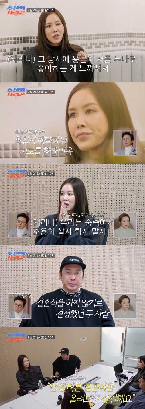 13년 전 비극을 딛고 사랑에 빠진 채리나♥박용근의 '늦깎이 결혼식' 준비는 극사실주의 다큐 예능 TV CHOSUN ‘조선의 사랑꾼’에서 2월 24일(월) 오후 10시에 공개된다.