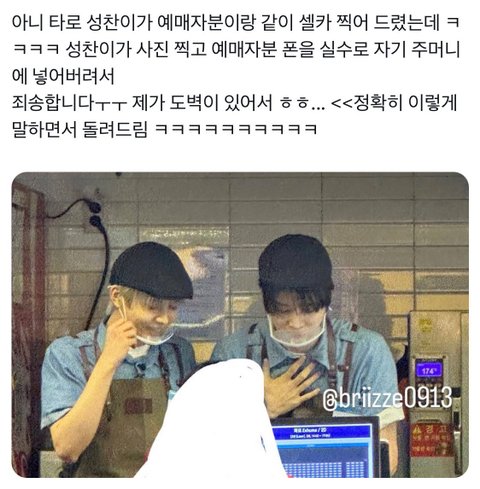 혹시나 해서 적는 건데 저거 첫 짤 워크맨에서 아바타 알바한 거라서 시키는 대로 말하고 행동하고 한 거거든 도벽이 있어서 ㅎㅎ.. 이것도 시킨 대로 한 거임 혹시라도 오해하거나 괜히 억까하는 사람 나올까 봐 미리 말함!