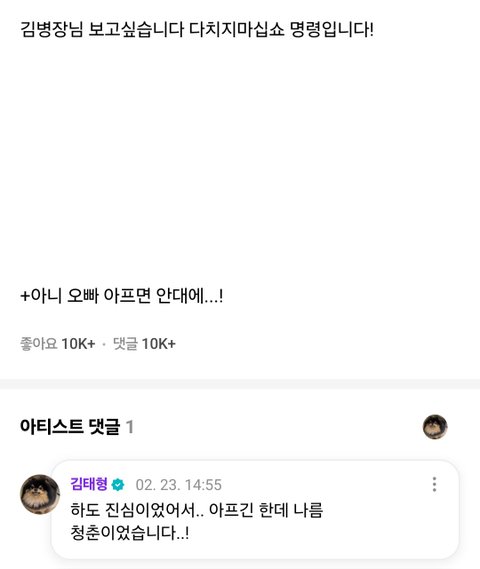얼굴쪽에 빨갛게 상처가 보이네? 정작 본인은 아무렇지 않은듯 올렸는데 내가 다 쫄림 다치지 마라 특히 얼굴..