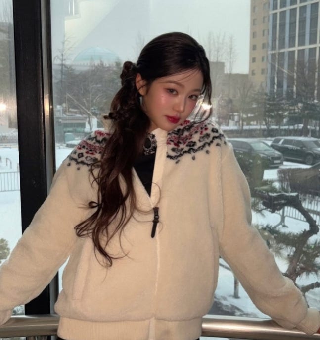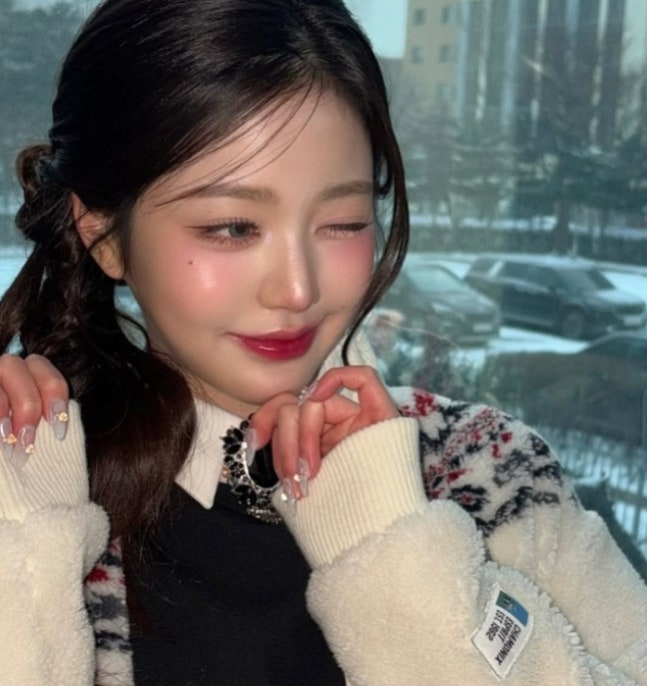 장원영 소셜미디어장원영은 눈 쌓인 풍경이 한눈에 보이는 창문 밖 풍경을 배경으로 윙크를 하거나 꽃받침 포즈를 하는 등 사랑스러운 매력을 발산했다.