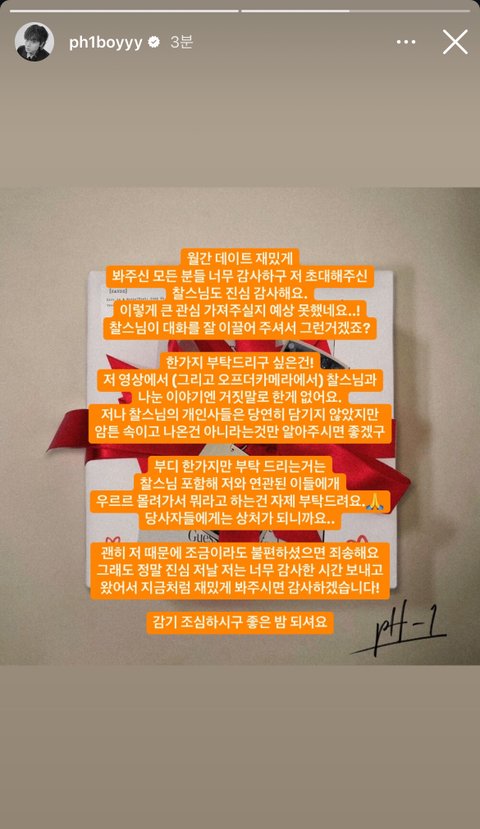 저게 연기면 싸패지 피에이치원이 예전부터 찰스 팬이라고 했었고 본인도 유명한데 굳이 찰스 유튜브로 뜨려고 어그로 끌 이유도 없고 팬으로서든 이성으로서든 쨌든 찰스 좋아하는거 진심같았음 ㅋㅋ