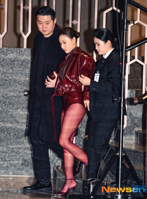 마마무 화사, 경호팀 부축 받으며 조심조심[포토엔HD]
