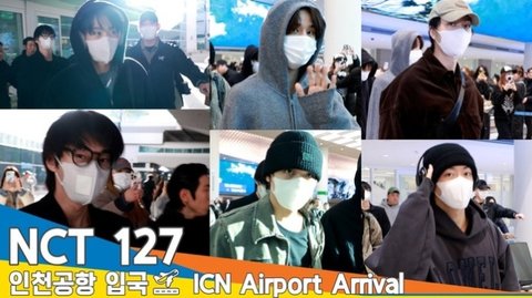 김기태 teddy@newsen.com[인천국제공항=뉴스엔 김기태 기자] 가수 NCT 127 멤버 쟈니, 유타, 도영, 마크, 해찬, 정우가 2월 24일 오후 NCT 127 4TH TOUR ‘NEO CITY : BANGKOK – THE MOMENTUM’ 해외 투어 일정을 마치고 인천시 중구 인천국제공항을 통해 입국하고 있다.