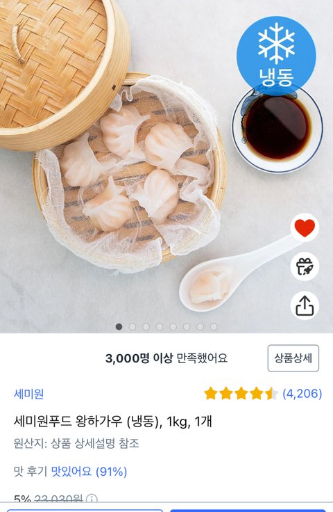 생어거스틴 새우딤섬이 이거랑 싱크로율 100%임