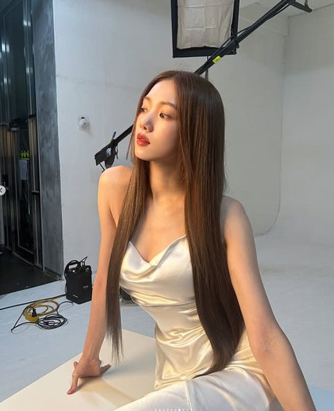 사진 속 이성경은 우아한 실크 드레스를 입고 긴 생머리를 자연스럽게 늘어뜨린 채 세련된 분위기를 자아내고 있다. 촬영 세트장에서 포즈를 취하고 있는 모습은 그녀의 고급스러운 스타일과 독보적인 비주얼을 한층 돋보이게 한다.