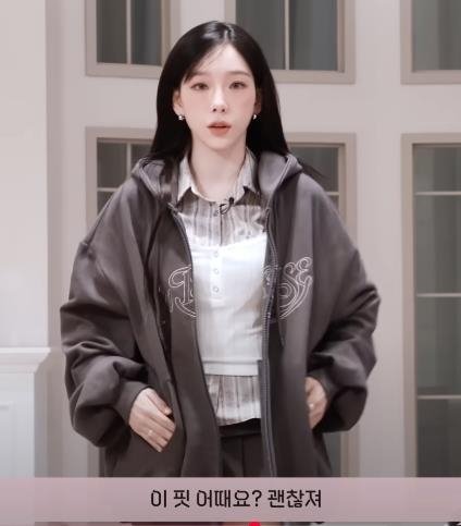 MD로 나온 후드&집업 실착핏 보여주는 태연