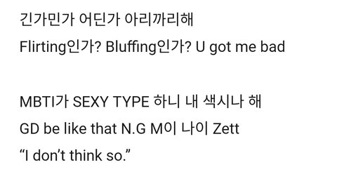거의 마흔 돼가는 아저씨가 자기보다 한참 어린 카리나 데려다놓고 저런가사 쓴다고 트위터에서도 지디 반응 별로던데