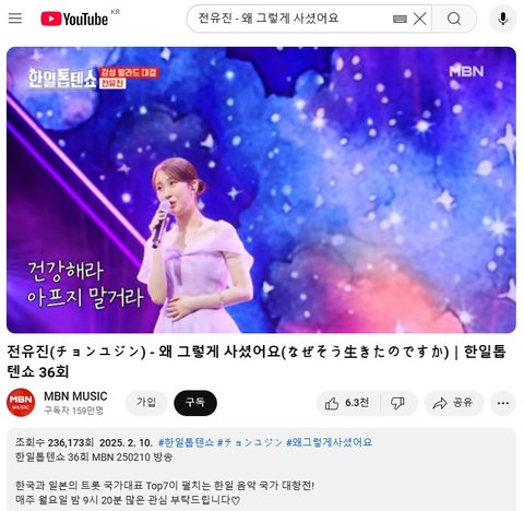 (사진5 설명) 전유진(チョンユジン) - 왜 그렇게 사셨어요(なぜそう生きたのですか)|한일톱텐쇼 36회