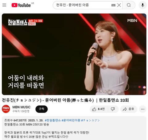 (사진9 설명) 전유진(チョンユジン) - 묻어버린 아픔(葬った痛み) |한일톱텐쇼 33회