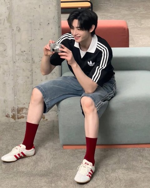 네이비 삼선 져지 미쳤고.. 삼선 반팔에 반바지 조합도 미쳤음 아디다스 입으려고 태어난 사람처럼 온몸에 삼선 휘두르고 넘 잘 소화함.. 복복해줘야대