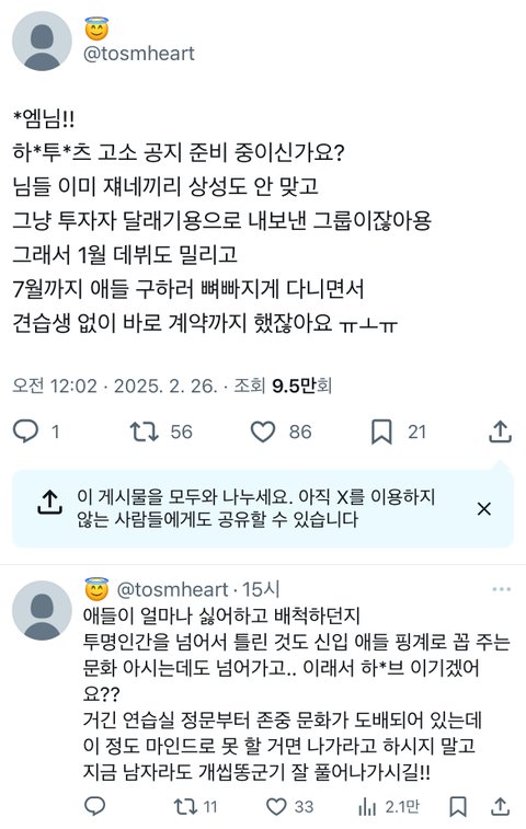하투하 연습생 왕따 루머
