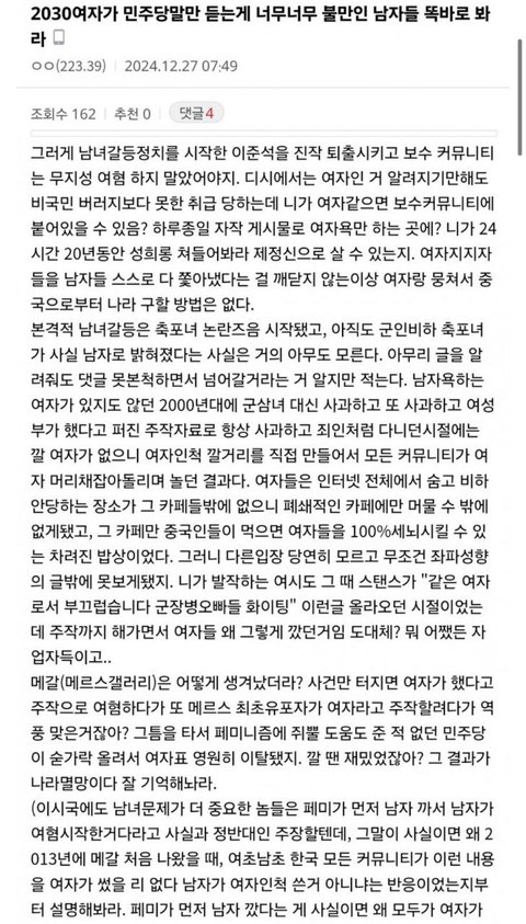 그러게 남녀갈등정치를 시작한 이준석을 진작 퇴출시키고 보수 커뮤니티는 무지성 여혐 하지 말았어야지.
