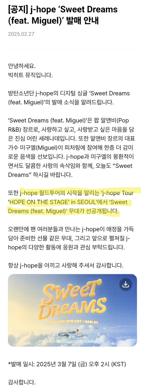 호비 콘서트에서 신곡 공개하려나