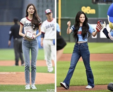 몸매 인형같은 장원영이 입었으면 모델 포스 쩔었을텐데 카리나 체형이 문제 허벅지 굵고 종아리 짧고 다리 안예쁨