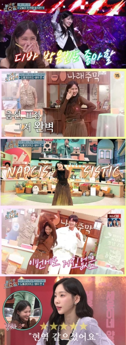 당시 '놀토'에 첫 등장한 박은빈은 주연작 '무인도의 디바' 캐릭터에 빙의한 발랄한 모습으로 화제를 모았다. 간식 게임 코너에서 걸그룹 아이브의 노래를 완벽하게 커버하더니, 상대역 채종협까지 데리고 나와서 블랙핑크의 '셧다운(Shut Down)' 무대도 선보여 현직 걸그룹 못지않은 춤선을 자랑했다. 이에 소녀시대 태연은 "진짜 현역 같았다"라고 감탄했다.