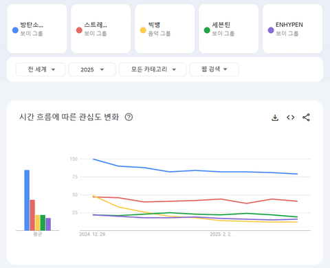 1위 방탄2위 스키즈3위 빅뱅4위 세븐틴5위 엔하이픈