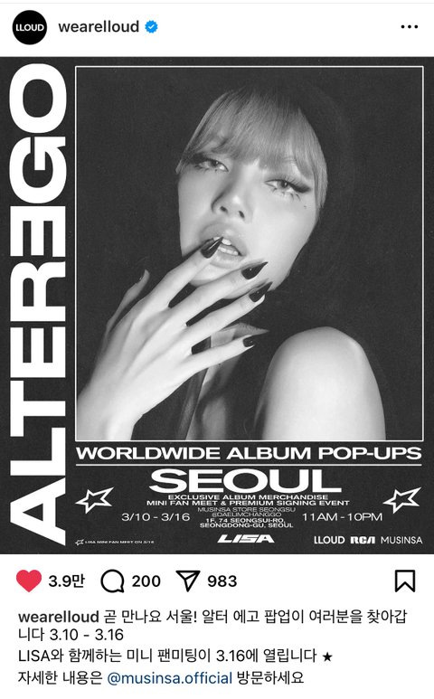 팝업 여는 국가 중 지금까지 한국, 뉴욕만 미니팬미팅 일정 뜬 거 같고 나머지 국가는 추후 공지할듯