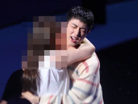 지난해 6월 13일 방탄소년단(BTS) 진이 1000명의 팬과 포옹하는 행사에서 한 여성 팬이 진에게 기습 뽀뽀를 하고 있다. /독자 제공