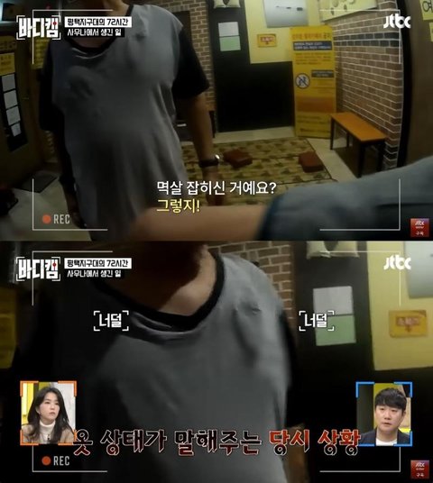 멱살 잡혀서 찜질복 다 늘어낫음요 ㅋㅋ