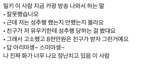 쟤 때문에 남초에서 성폭행보다 무고죄가 더 많다고 묻어가는중 ㅋㅋㅋㅋㅋㅋㅋ 개빡침..