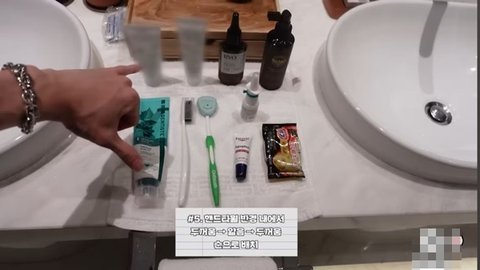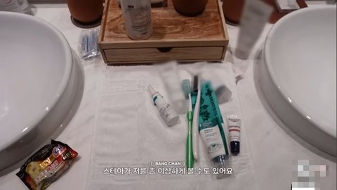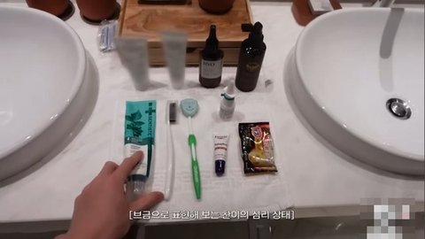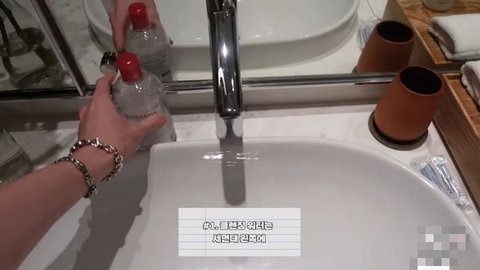세면도구 정리하러 욕실 들어옴