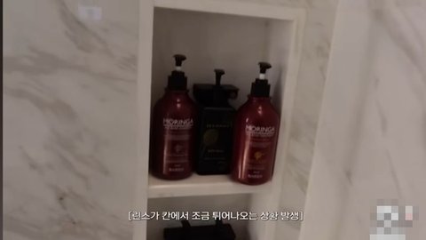 샴푸랑 린스 두려고 샤워부스 들어왔는데 공간 부족 이슈로 린스가 튀어나옴