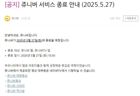 (쥬니버 화면 갈무리)변화하는 환경, 그리고 쥬니버의 마침표
