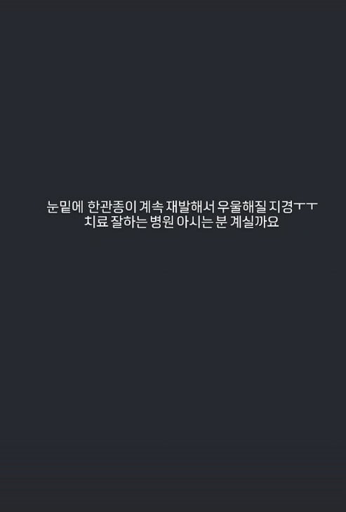 배우 하재숙이 도움을 요청했다.하재숙은 지난 27일 자신의 인스타그램 스토리에 "눈 밑에 한관종이 계속 재발해서 우울해질 지경. 치료 잘하는 병원 아시는 분 계실까요?"이라며 도움을 공개적으로 요청했다.