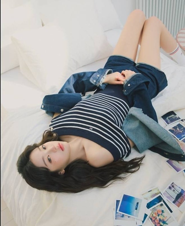 특히 침대 위에 자연스럽게 누운 컷에서는 긴 팔다리가 강조된 완벽한 비율이 돋보였다.