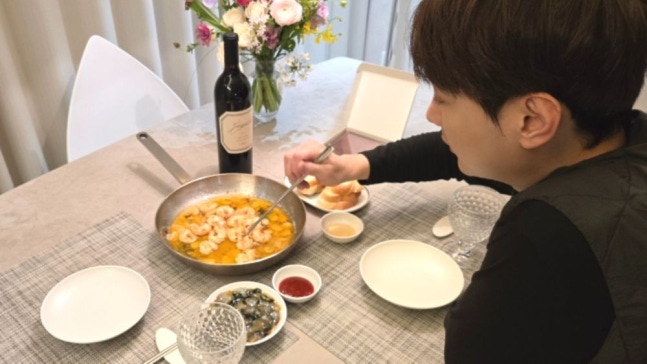 지난 27일 민경훈은 개인 채널을 통해 "다들 저녁 맛있게 드세요. 앞으로 종종 올릴게요"라는 멘트와 함께 아기자기한 저녁 식사 현장을 게시했다. 사진 속 민경훈은 꽃과 와인을 비롯해 감바스 등 여러 음식이 있었다. 두 명 몫의 식기까지 눈에 띄었다.