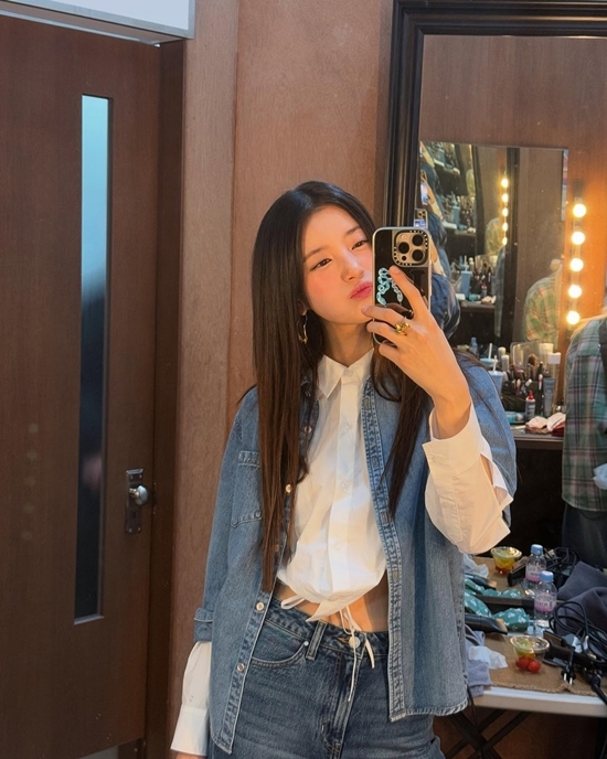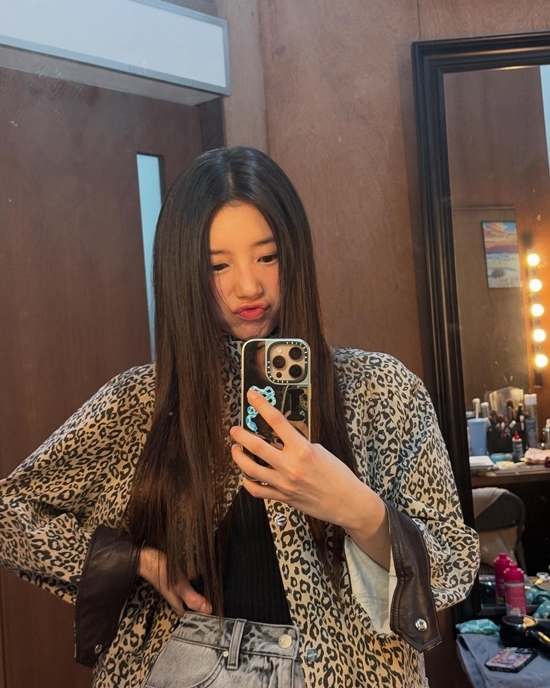 수지는 대기실에서 거울을 통해 셀카를 남기고 있기도. 무엇보다 수지는 호피, 데님룩 등 뭐든 잘 어울려 보는 이들의 감탄을 자아냈다.