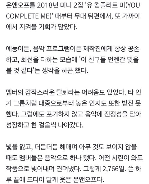 이번 1위 기사에 기자분이 쓰신 내용인데 감동임ㅠ 온옾이랑 같이 일했던 스탭들도 막 실장 돼서 온옾한테 인사하러 찾아오고 그런대 미담뿐인 아이돌