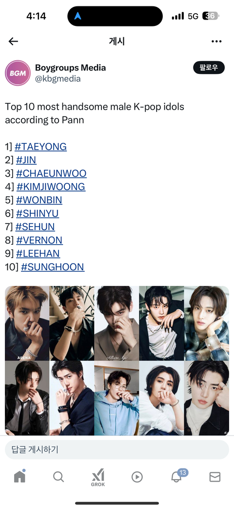 진짜 어제 해외 트위터에서 난리난 남자아이돌 멤버 잘생긴 순위를 얘기한거야