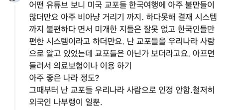 그래서 외국인들한테 자기 나라 욕하거나 욕하는 영상 만들면 안된다는거 그런데 많은 교포들이 저런짓거리해서 정상적인 사상을 가진 한국인들만 고생중