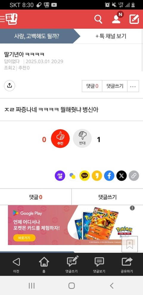 우쭈쭈쭈 그새 멘탈 터져서 글 다시올렸오? 판에서 르세라핌 관련 발작은 릇탈피 너 혼자 한다니까ㅠ? 글 다시쓰면 르세라핌은 콘서트돌때,..