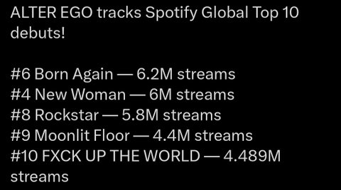 12곡 15곡 두앨범 내서 스밍합산된 수치임 방탄지민방식 ㅇㅇ그래서 타이틀만 몰빵 받은거래 타이틀 400만이 넘는데 수록곡 한곡도 못들어온 이유기도 하고.