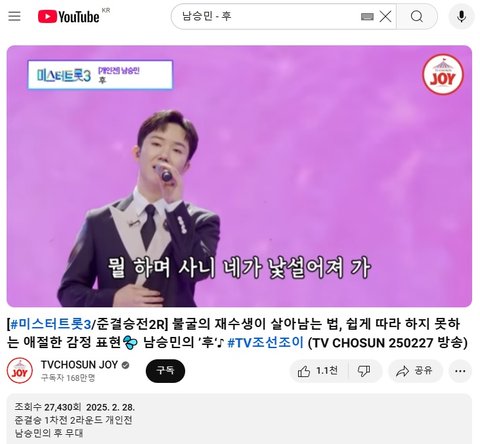 (사진4 설명) 남승민의 ’후‘♪ #TV조선조이 (TV CHOSUN 250227 방송)