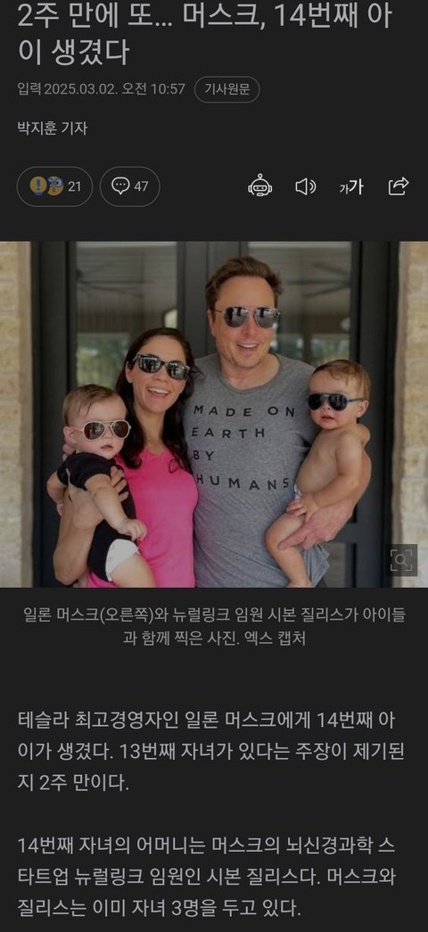 당시 일론은 그라임스(가수)와 연애중이었고 출산시기가 겹쳐서 같은 병원 입원