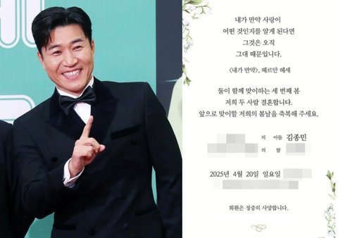 '4월의 신랑' 혼성그룹 코요태 멤버 겸 방송인 김종민(46)의 청첩장이 공개됐다.스타뉴스는 김종민의 청첩장을 3일 단독 입수했다. 김종민과 예비신부는 청첩장에 '둘이 함께 맞이하는 세 번째 봄, 저희 두 사람 결혼합니다. 앞으로 맞이할 저희의 봄날을 축복해주세요'라고 결혼식을 초대하는 글을 적었다. 청첩장 문구를 통해 두 사람이 약 2년 전부터 연인 사이였음을 짐작할 수 있다.