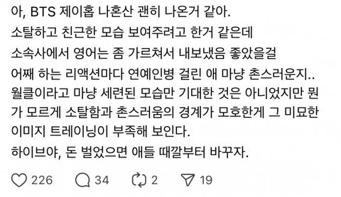 앞으로 안보면 됨 너 안 봐도 제이홉 타격 1도 없다 신경 끄고 살아
