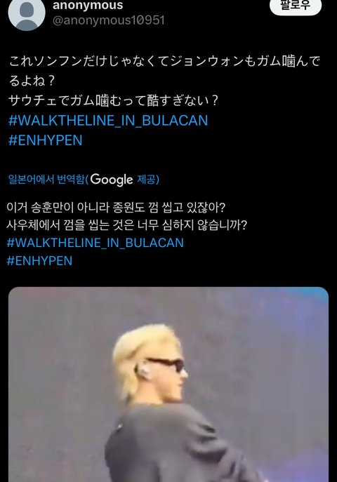 엔하이픈 정원도 무대에서 껌 씹었네ㅋㅋㅋㅋ