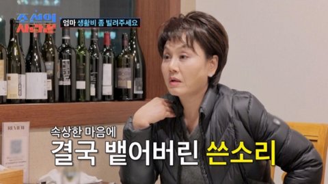 사진 출처=TV CHOSUN이경실은 아들과 함께 집 근처 소고깃집으로 향했다. 손보승은 "어릴 때는 고기가 이렇게 귀한 줄 몰랐다. 내일 아침까지 일해도 못 먹는데..."라며 잠시 가장의 무게를 내려놓고 '아들'로 돌아왔다. 이경실이 아들의 연기자 활동에 대한 근황을 묻자, 손보승은 "OTT 작품 2회분 어치의 출연료는 이미 가불 받았다"며 넉넉지 않은 경제 사정을 털어놓았다.이후 손보승은 밀린 카드값, 관리비 등을 내기 위해 "200만 원만 꿔 주시면...조만간 갚겠다"며 떨어지지 않는 입을 열었다. 이에 이경실은 "너희가 손자 데리고 여기저기 잘 놀러 다녀서 생활이 좀 되는 줄 알았다. 그럼 생활이 안 되는데도 일단 카드로 막 놀러 다니는 거냐"며 말을 꺼냈다. 또, "언제까지 엄마만 믿고 돈을 쓸 거냐. 돈이라는 것은, 없으면 쓰질 말아야 한다"라고 진심을 담아 쓴소리를 건넸다. 결국 말이 없어진 모자의 모습에 VCR을 지켜보던 황보라는 "내 마음이 찢어질 것 같다"며 안타까워했다.