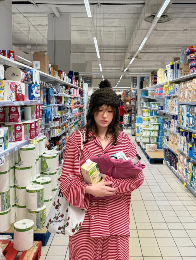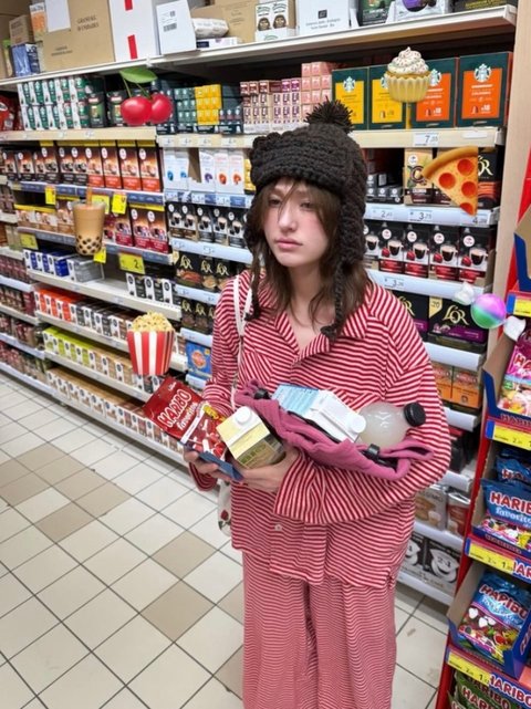 특히, 빨간 스트라이트 무늬의 투피스 셋업에 짙은 밤색의 트루퍼 모자, 어그 부츠를 매치해 시선을 사로잡았다. 스페인 길거리에서 다소 편안한 차림으로 전소미만의 독특한 스타일링을 보였으며 캐나다 혼혈의 이국적인 외모로 화려한 이목구비를 자랑했다.