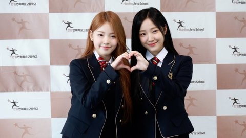 그룹 유니스 오윤아, 방윤하가 4일 오전 서울시 송파구 한림연예예술고등학교에서 열린 2025년도 입학식에 참석했다..