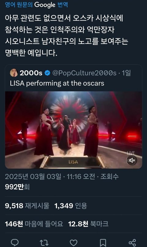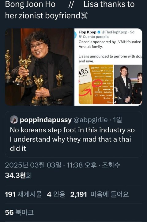 서양인이 아니고 저거 ㅂㅌ팬임. 보고왔는데 리사 까는 애들 거의 다 ㅂㅌ 외퀴, 외 타 케이팝 ㅚ퀴팬들.
