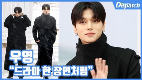 이날 우영은 눈 내리는 날, 블랙 롱 코트를 착용해 마치 드라마 '도깨비'의 한 장면을 연상케했다.김미류(mkim_dispatch@naver.com)영상:김미류기자