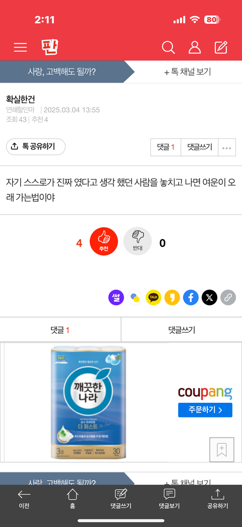 댓글 많은 톡
