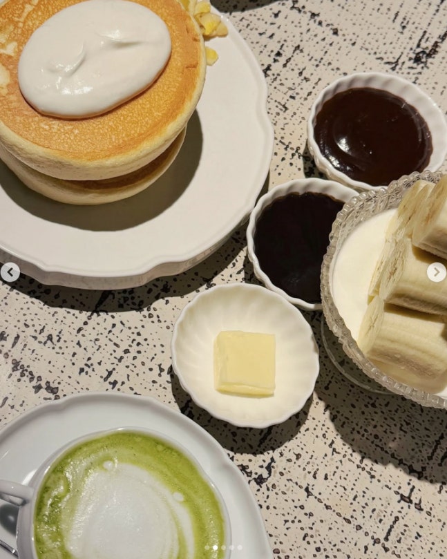 제시카는 3일 "수플레 팬케이크와 말차 라떼. 내가 더 말할 필요 있어?"라는 글과 함께 사진을 게시했다.