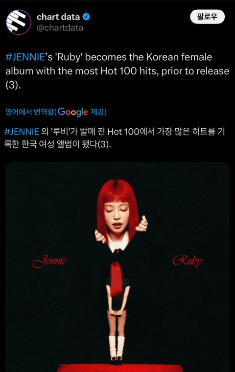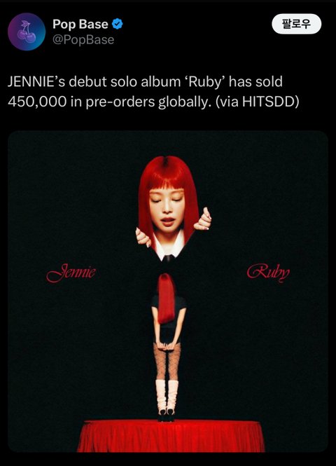 이번주 금요일 오후 2시 제니 정규 RUBY 많관부~~♥