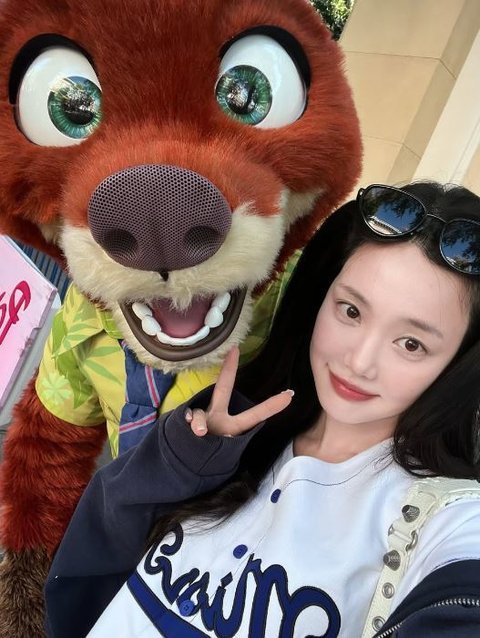 사진=이유비공개된 사진 속 이유비는 미국 여행 중 디즈니 파크를 찾은 모습. 세계적 인기를 끈 '주토피아'의 캐릭터 닉과 포즈를 취하는 등 러블리한 매력이 돋보인다.